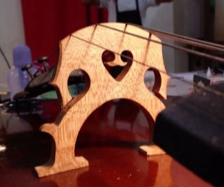 Thinking 'outside the box'. We needed a 3/4 cello bridge but only had a 4/4 one.
